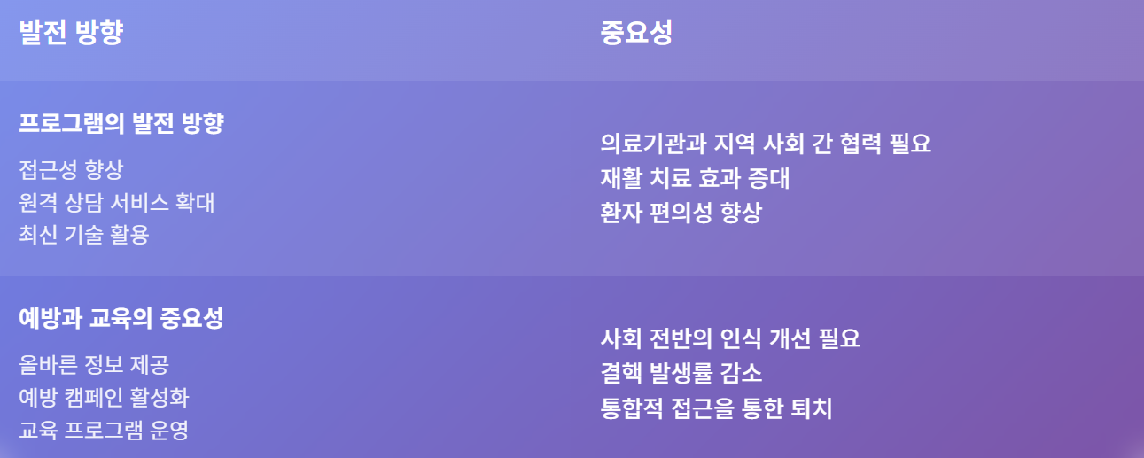 | 프로그램의 발전 방향 | 의료기관과 지역 사회 간 협력 필요 |