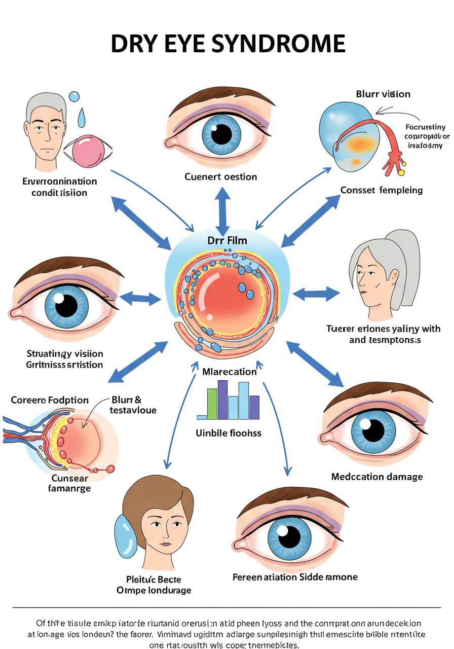 안구 건조증은 눈물의 양이나 질이 부족해 발생하는 증상으로, 다양한 원인에 의해 유발될 수 있습니다. 눈물이 충분하지 않으면 눈의 표면이 제대로 보호되지 않아 불편함을 느낄 수 있습니다. 이 질환은 노화, 환경적 요인, 특정 약물 등이 원인으로 작용할 수 있습니다.