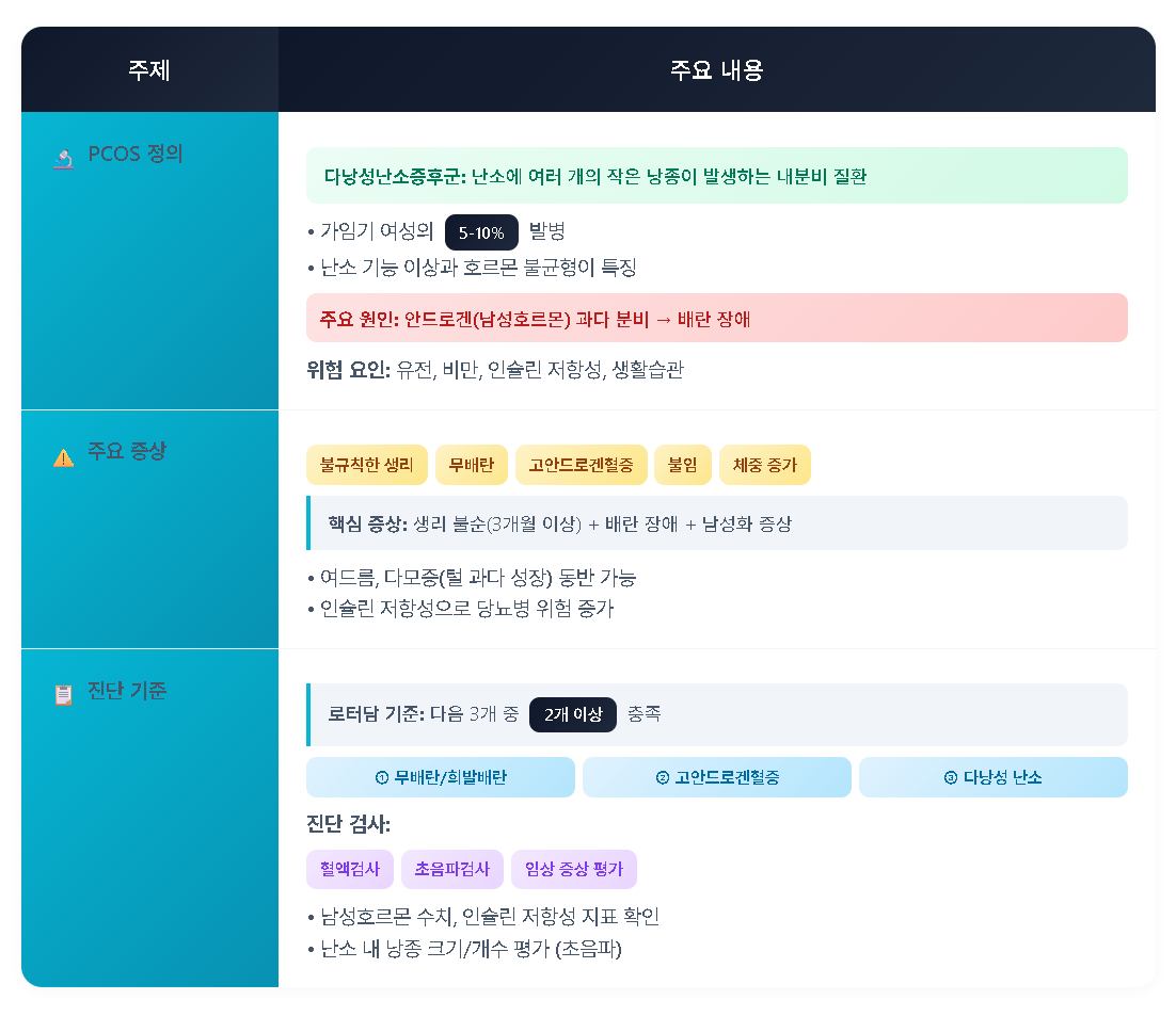 다낭성난소증후군(PCOS)은 여성의 난소에 여러 개의 작은 낭종이 발생하는 내분비 질환입니다.