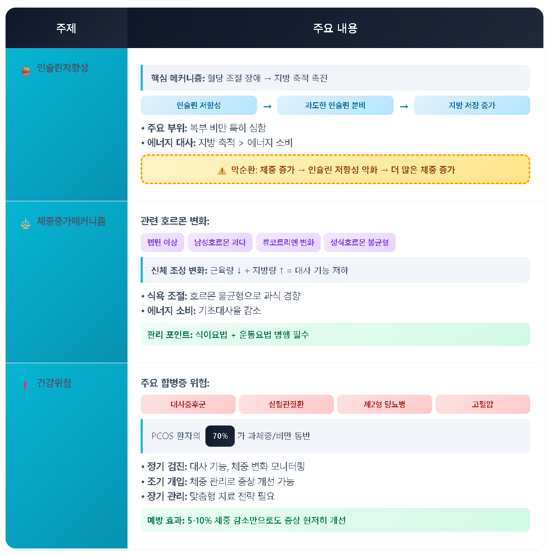 PCOS 환자에게서 흔히 동반되는 인슐린 저항성은 체중 증가의 주요 원인입니다.