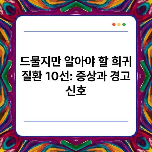희귀 질환은 발생 빈도가 낮지만 조기 발견이 중요합니다. 드물지만 알아야 할 희귀 질환 10선은 증상과 경고 신호를 중심으로 설명합니다. 각 질환의 특징과 주의사항을 명확히 이해하는 것이 필요합니다. 이 글에서는 주요 희귀 질환의 증상과 경고 신호에 대해 자세히 알아보겠습니다. 지금부터 관련된 핵심 정보들을 하나씩 살펴보겠습니다.