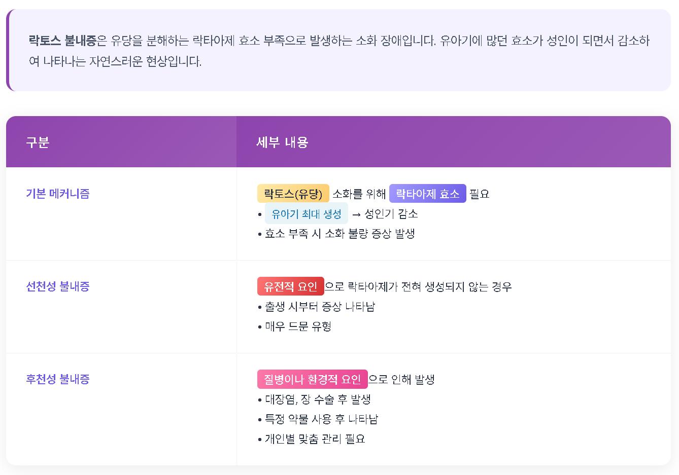 ✅락토스 불내증은 유당 소화 효소의 부족으로 발생합니다