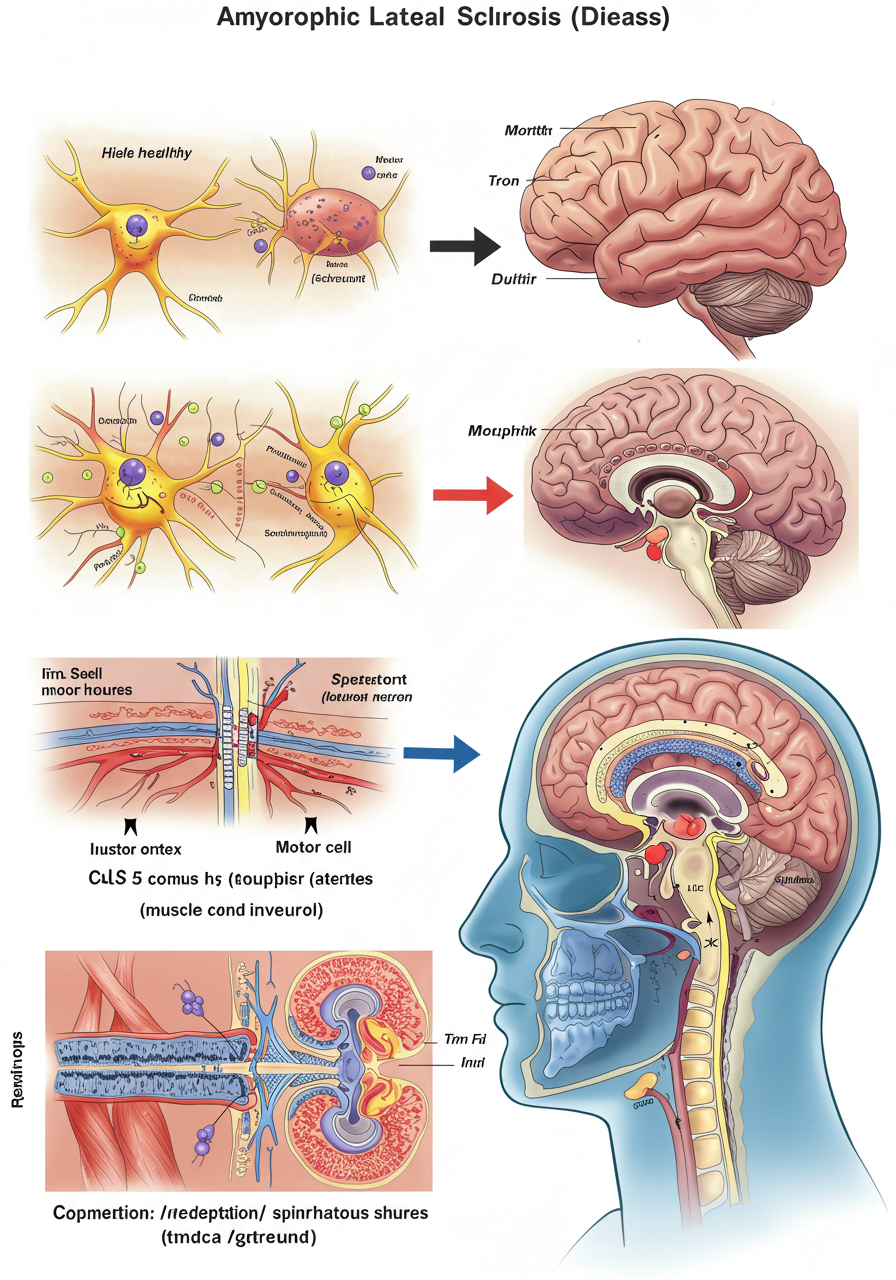 근위축성측삭경화증은 신경 세포의 퇴행성 질환으로, 주로 운동 신경에 영향을 미칩니다. 이 질환은 뇌와 척수의 운동 신경 세포가 점차적으로 손상되어 근육이 위축되는 과정을 겪습니다. 결과적으로 운동 기능이 저하되며, 일상생활에 큰 어려움을 초래합니다.