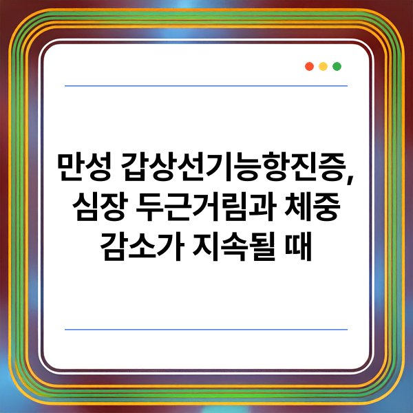 만성 갑상선기능항진증은 심장 두근거림과 체중 감소 같은 증상을 지속시킬 수 있는 질환입니다. 이러한 증상이 나타나면 일상생활에 큰 영향을 줄 수 있어 조기 진단과 관리가 중요합니다. 본문에서는 만성 갑상선기능항진증의 주요 증상과 원인, 진단 방법, 치료법 등에 대해 자세히 알아보겠습니다. 갑상선 기능 이상과 관련된 심장 및 체중 변화의 특징을 집중적으로 살펴봅니다. 지금부터 만성 갑상선기능항진증과 심장 두근거림과 체중 감소와 관련된 주요 정보들을 하나씩 정리하겠습니다.