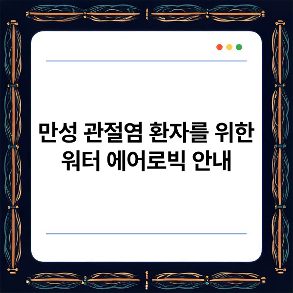 만성 관절염은 많은 사람들이 겪는 질환으로, 통증과 불편함을 초래합니다. 이러한 증상을 완화하기 위해 운동은 매우 중요한 역할을 합니다. 특히 워터 에어로빅은 관절에 부담을 덜 주면서도 효과적인 운동 방법으로 주목받고 있습니다. 본 글에서는 만성 관절염 환자를 위한 워터 에어로빅의 이점과 운동 방법, 주의 사항 등을 자세히 알아보겠습니다. 또한 관련된 핵심 내용을 정리했으니 끝까지 읽어주시기 바랍니다.