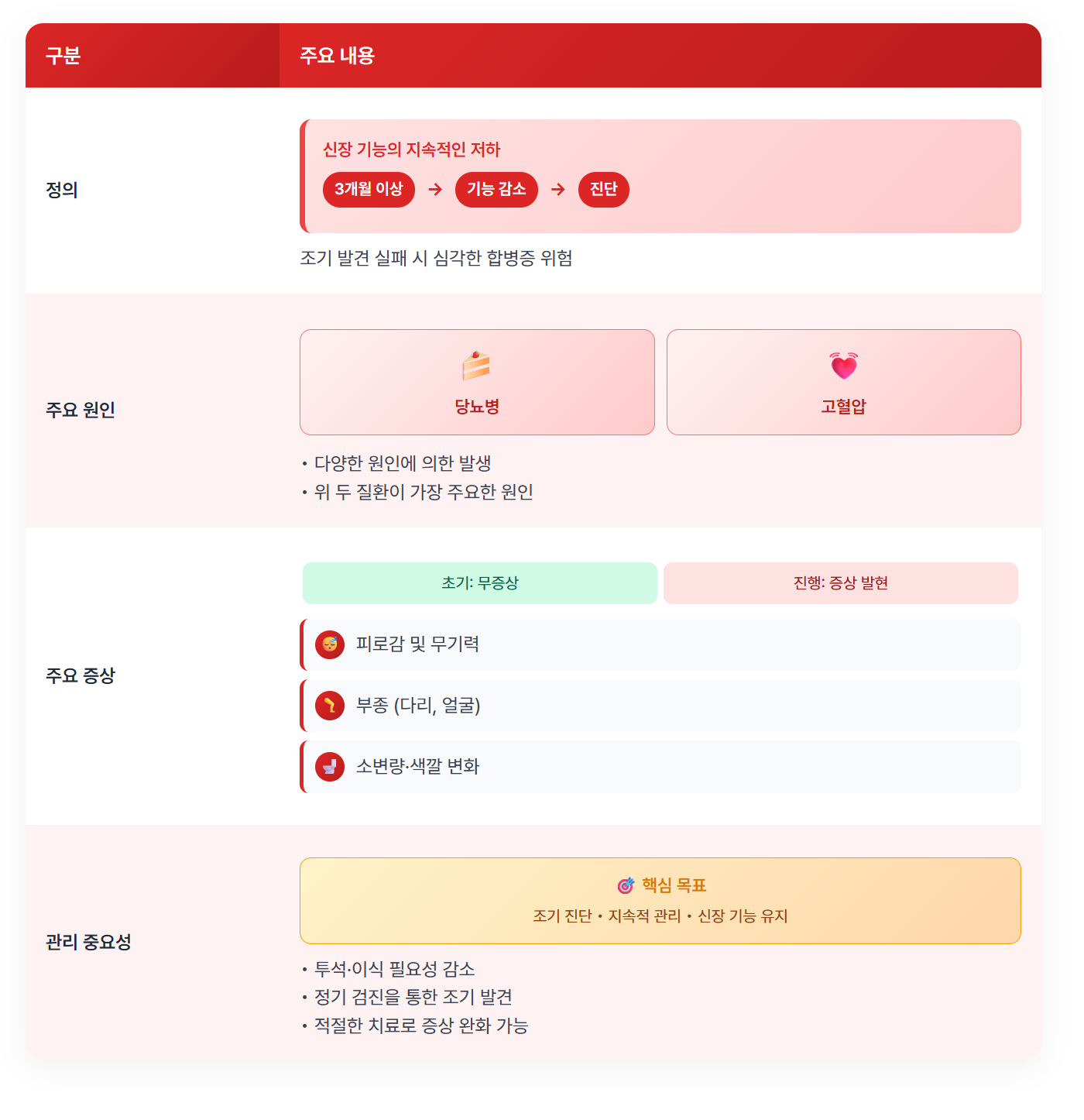 | 증상 | 피로감, 부종, 소변 변화 |