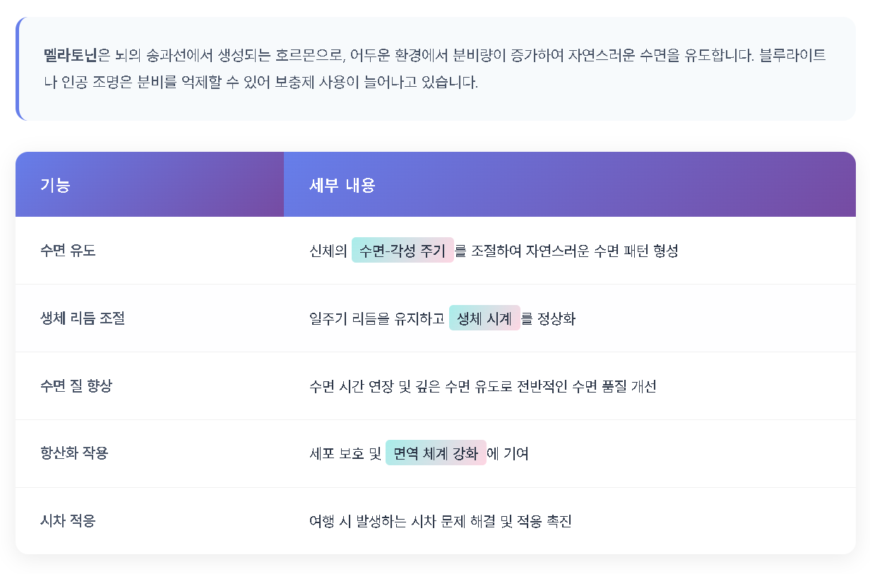 ✅멜라토닌은 수면 조절 호르몬으로 사용됩니다