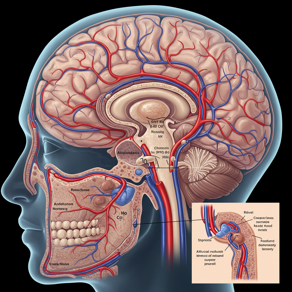 이로 인해 뇌혈류가 감소하고, 뇌는 보상적으로 작은 망상혈관을 확장시켜 혈류를 유지하려 합니다.