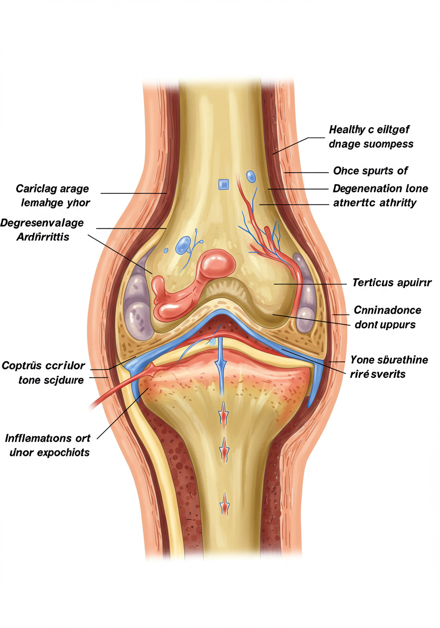 퇴행성 관절염은 주로 나이와 관련된 자연적인 퇴행 과정으로 발생합니다. 나이가 들어감에 따라 관절의 연골이 점차적으로 마모되며, 이로 인해 통증과 불편함이 발생합니다. 이러한 과정은 시간이 지남에 따라 점진적으로 진행됩니다.