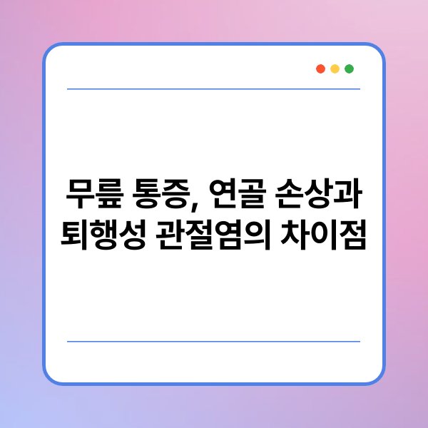 | 증상 차이 | 갑작스러운 통증(연골 손상) vs 점진적 통증(퇴행성 관절염) |