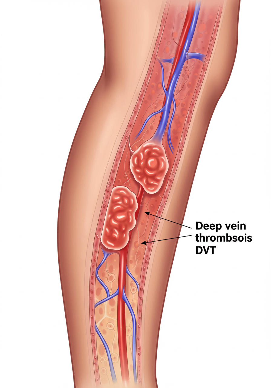심부정맥 혈전증은 정맥 내에 혈전이 형성되는 질환으로, 주로 다리의 깊은 정맥에서 발생합니다. 이 질환은 장시간 앉아 있거나, 특정 질병으로 인해 혈액의 응고가 증가할 때 발생할 수 있습니다.