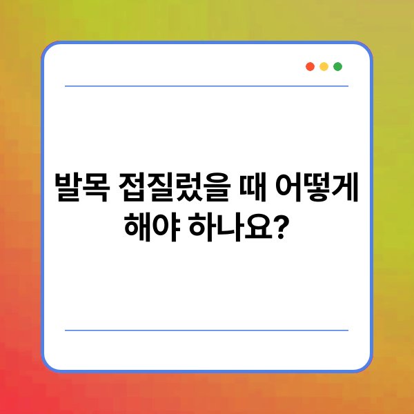 발목을 접질린 경우, RICE 원칙을 따르는 것이 효과적입니다. RICE란 Rest(휴식), Ice(냉찜질), Compression(압박), Elevation(상승)의 약자입니다. 이 네 가지 조치를 통해 부상 부위를 안정화하고 회복을 촉진할 수 있습니다.