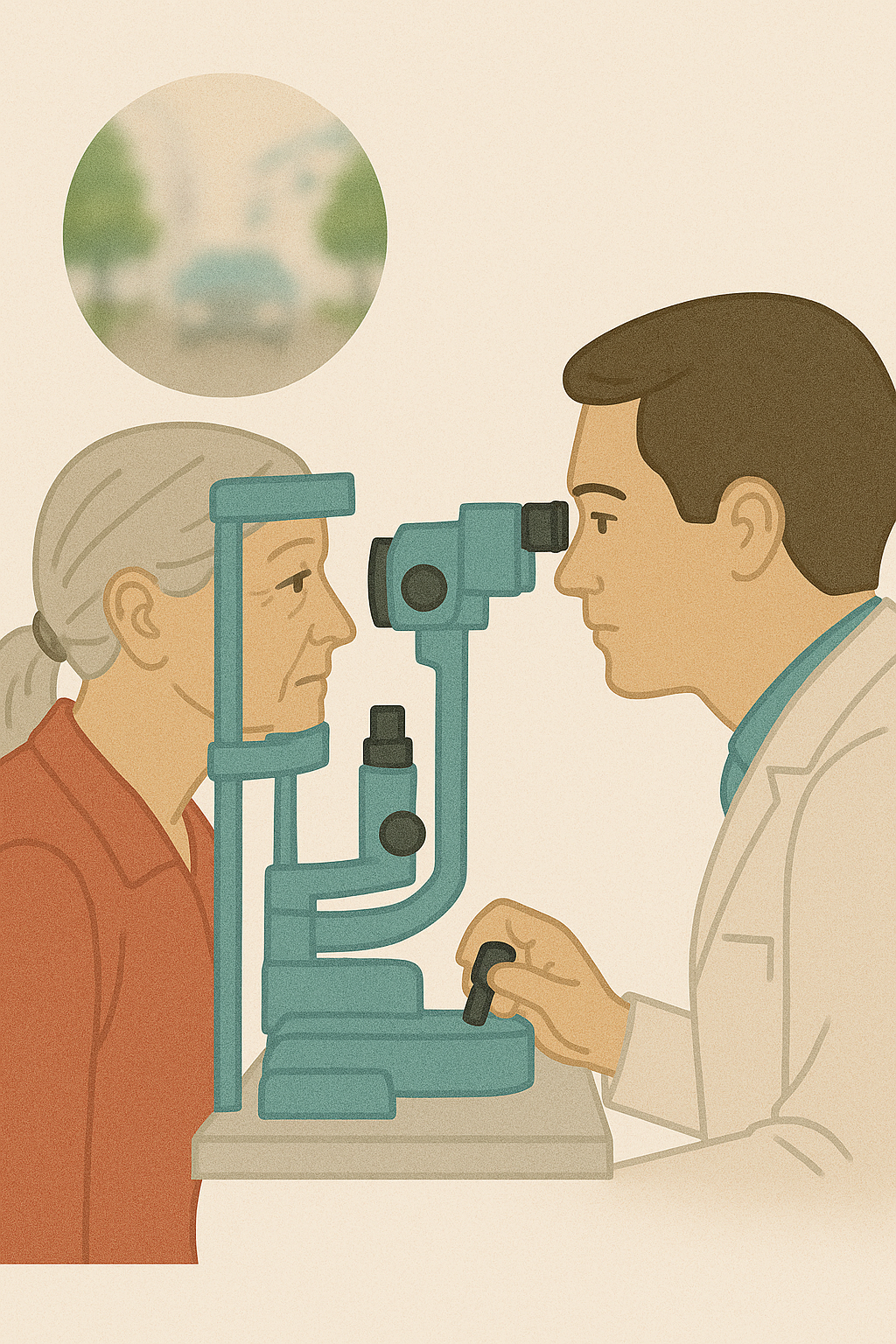 검진 시 시력 검사, 안압 측정, 수정체 상태 확인 등을 실시합니다.