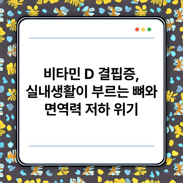 최근 비타민 D 결핍증이 실내생활 증가와 함께 심각한 문제로 대두되고 있습니다. 비타민 D는 뼈 건강과 면역력에 중요한 역할을 하며, 결핍 시 다양한 건강 문제가 발생할 수 있습니다. 특히 현대인들은 실내에서 대부분의 시간을 보내기 때문에, 자연광을 통한 비타민 D 합성이 줄어들고 있습니다. 이러한 상황에서 비타민 D 결핍증에 대한 경각심이 필요합니다. 지금부터 비타민 D 결핍증과 실내생활이 초래하는 뼈와 면역력 저하 위기에 대한 주요 정보들을 하나씩 살펴보겠습니다.