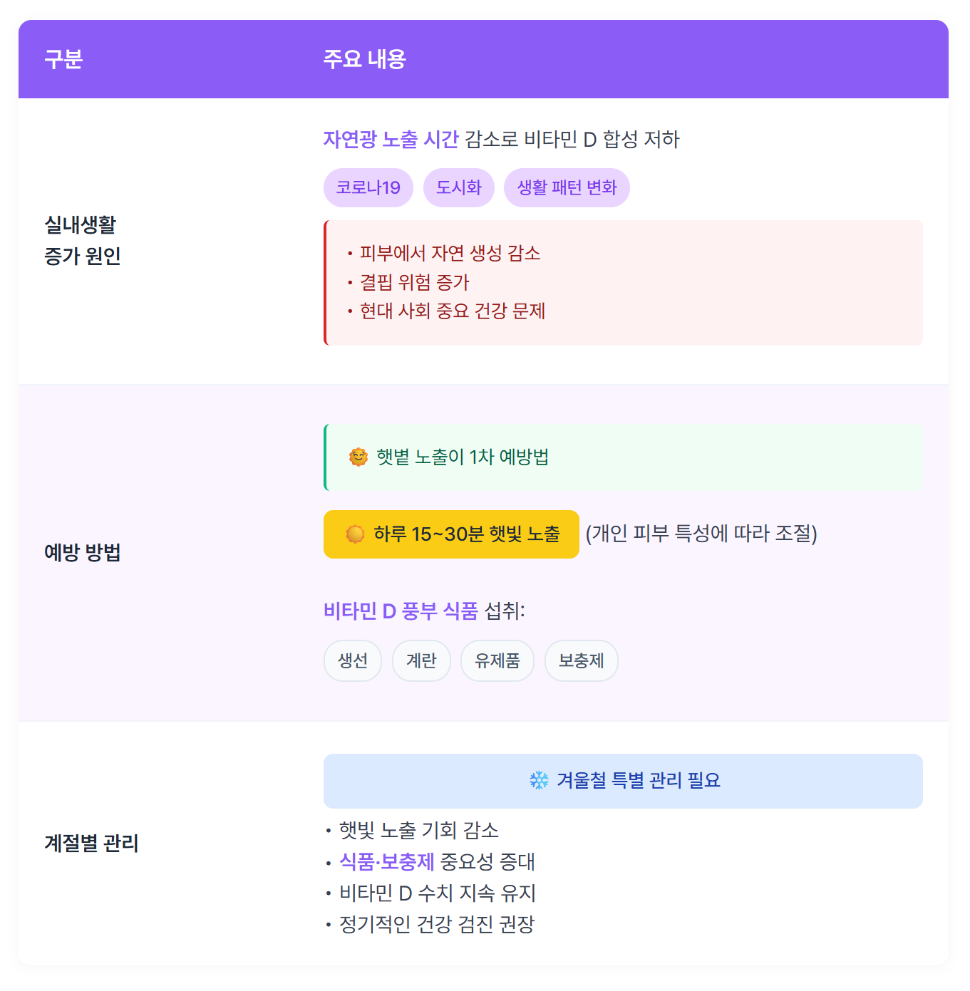 실내생활 증가로 비타민 D 합성 감소