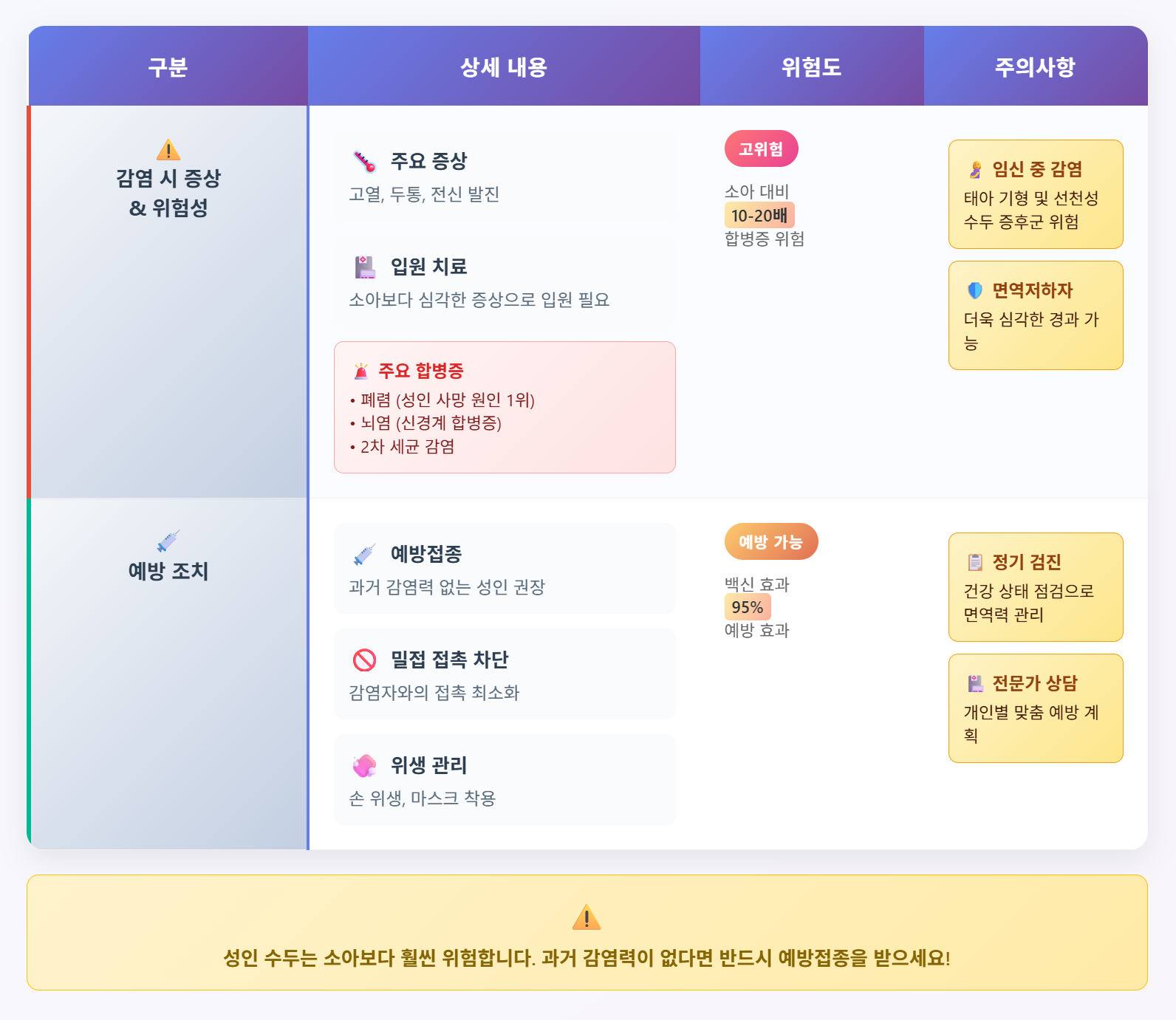 소아 수두 합병증, 성인 감염 위험과 예방접종 대상 확대