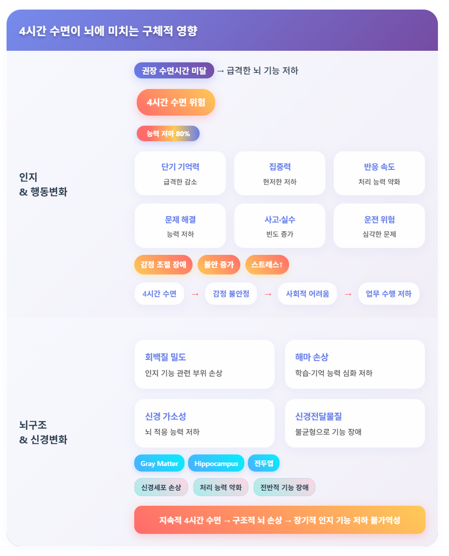 4시간 수면이 뇌에 미치는 구체적 영향
