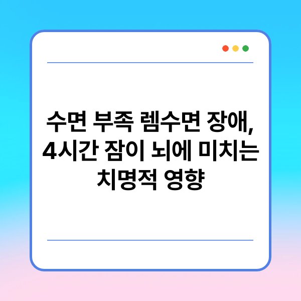수면 부족과 렘수면 장애는 현대인에게 심각한 문제로 대두되고 있습니다. 특히 4시간 정도의 짧은 수면 시간이 뇌에 미치는 영향은 다양한 연구를 통해 점차 밝혀지고 있습니다. 수면 중 특히 중요한 렘수면 단계의 장애는 뇌 기능 저하와 밀접한 관련이 있습니다. 이 글에서는 수면 부족과 렘수면 장애가 뇌에 미치는 치명적 영향에 대해 자세히 알아보겠습니다. 수면과 뇌 건강에 관심 있는 분들을 위해 핵심 내용을 정리했으니 끝까지 읽어주시기 바랍니다.