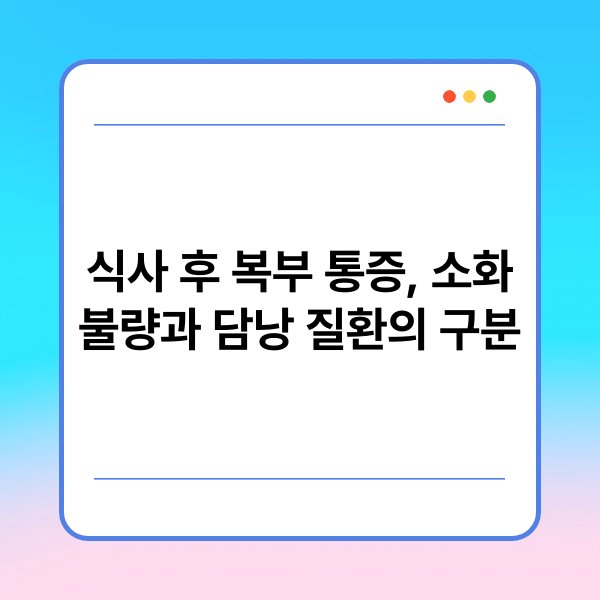 A1: 식사 후 복부 통증은 소화 불량, 담낭 질환, 식습관 등 다양한 원인으로 발생할 수 있습니다. 증상이 지속될 경우 전문가의 상담을 권장합니다.