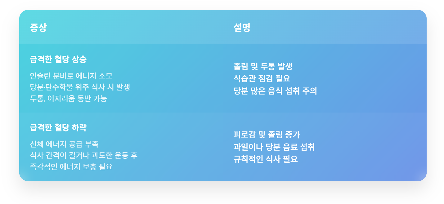 | 급격한 혈당 하락 | 피로감 및 졸림 증가 |