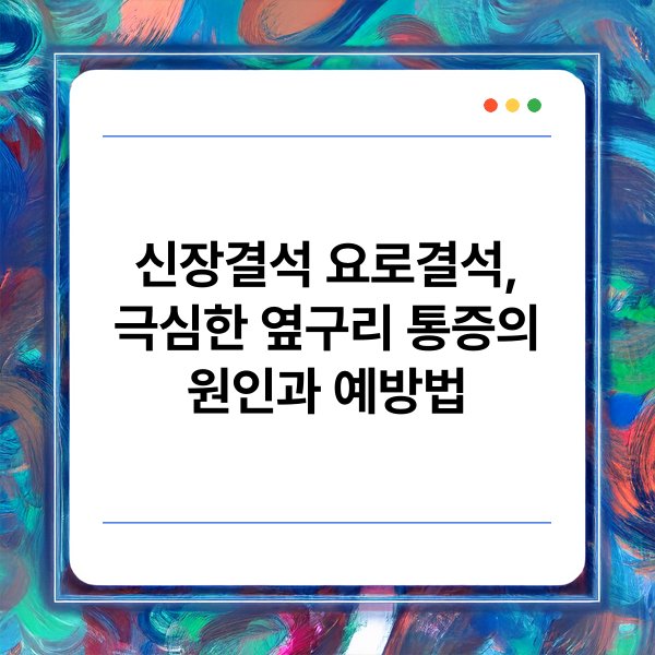 신장결석과 요로결석은 옆구리에 나타나는 극심한 통증의 주요 원인 중 하나입니다. 이러한 결석은 신장 또는 요로에 돌처럼 단단한 물질이 형성되어 통증과 다양한 증상을 유발합니다. 통증의 강도와 발생 위치는 결석의 크기와 위치에 따라 다르게 나타날 수 있습니다. 본문에서는 신장결석과 요로결석의 원인, 증상, 진단 방법, 치료법, 그리고 예방책에 대해 자세히 알아보겠습니다. 지금부터 신장결석과 요로결석과 관련된 주요 정보들을 하나씩 살펴보겠습니다.