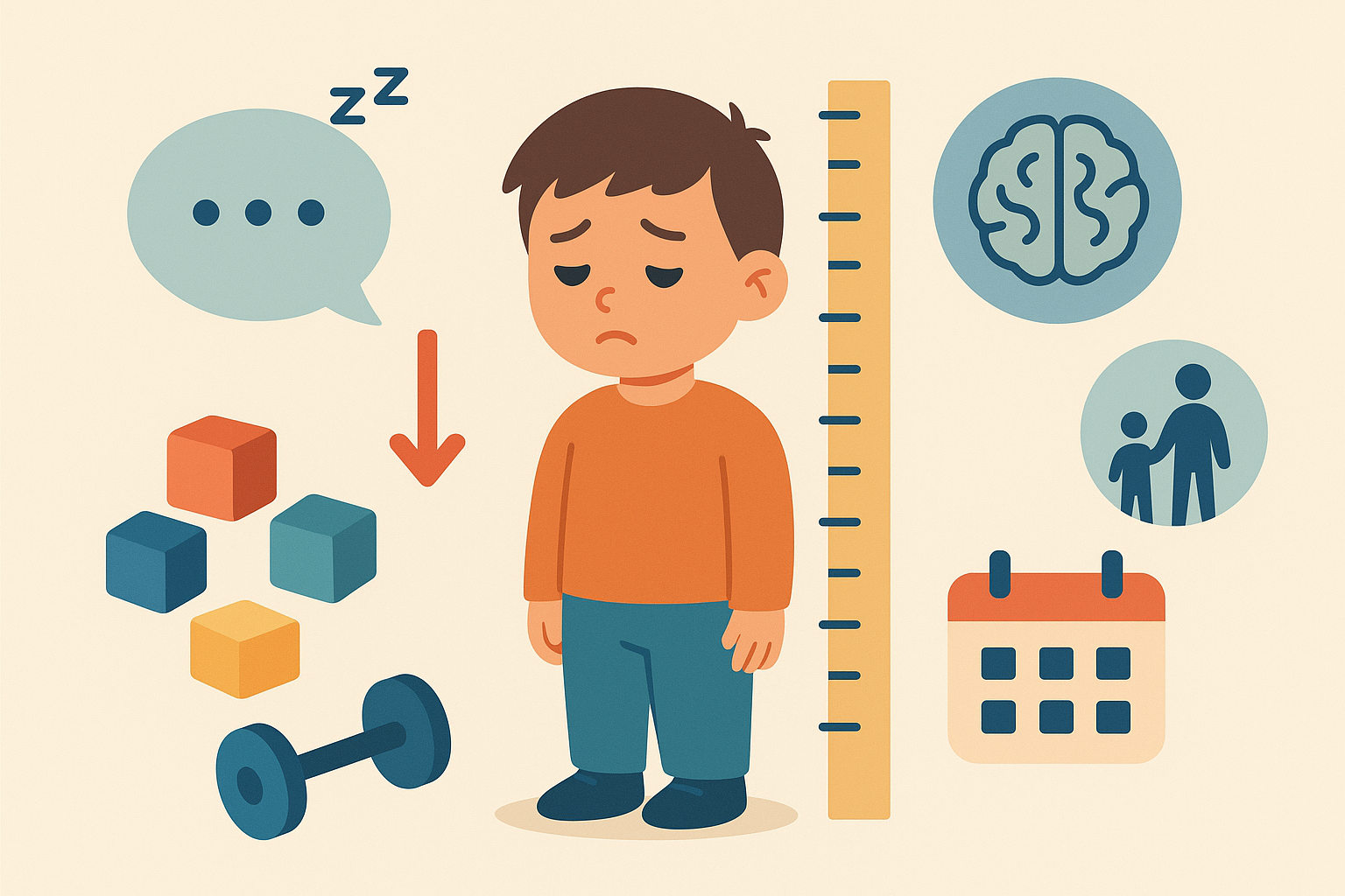 신체적 발달 지연은 아이가 예상되는 신체 이정표를 충족하지 못하는 경우를 말합니다. 예를 들어, 2세 아이가 걷지 못하거나, 3세 아이가 계단을 오르지 못하는 경우가 이에 해당합니다. 이러한 증상은 근육 발달 문제나 신경학적 문제와 관련이 있을 수 있습니다.
