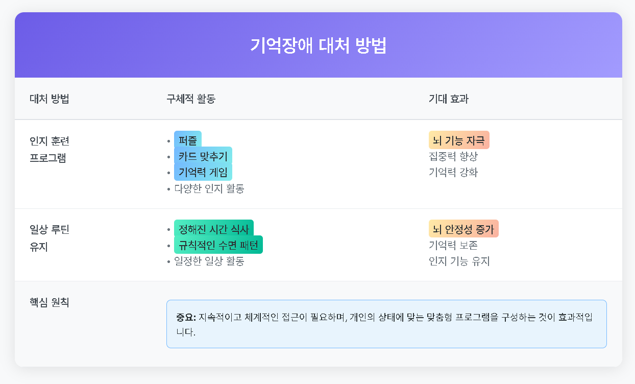 일상적인 루틴을 유지하는 것도 기억 장애에 대한 대처 방법 중 하나입니다.