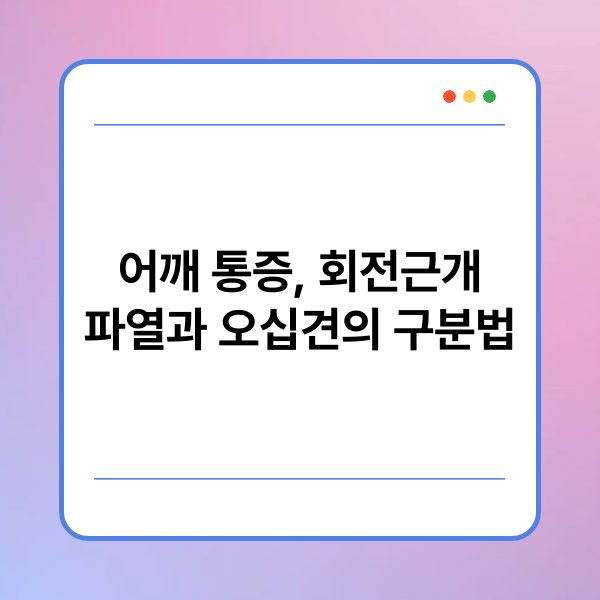 | 회전근개 파열은 수술적 치료가 필요할 수 있으며, 오십견은 비수술적 방법으로 치료 가능 |