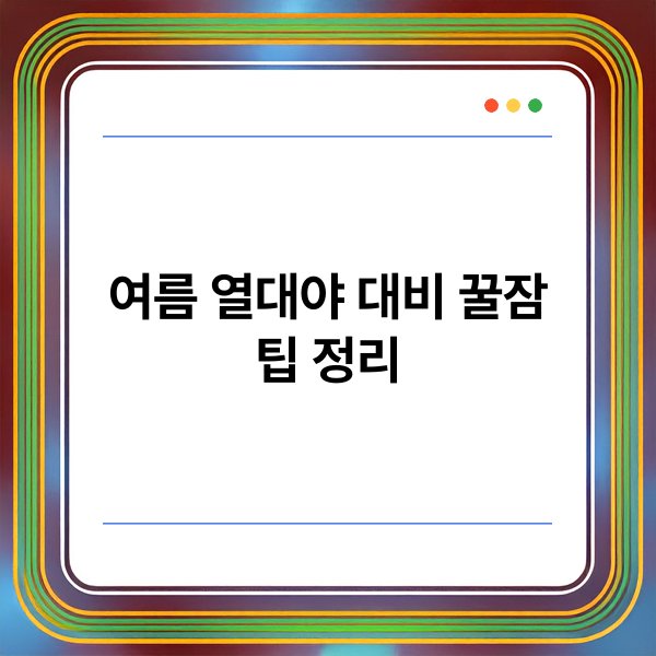여름철 열대야는 많은 사람들에게 수면의 질을 저하시킵니다. 높은 기온과 습도로 인해 밤잠을 제대로 자지 못하는 경우가 많습니다. 이러한 문제를 해결하기 위해 여름 열대야 대비 꿀잠 팁을 소개합니다. 이 글에서는 꿀잠을 위한 유용한 방법과 전략에 대해 자세히 알아보겠습니다. 여름철 편안한 수면을 위한 핵심 내용을 정리했으니 끝까지 읽어주시기 바랍니다.