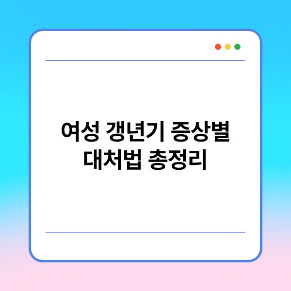 여성 갱년기는 중년 여성들에게 흔히 나타나는 생리적 변화로, 다양한 증상을 동반합니다. 이러한 증상은 신체적, 정서적, 그리고 인지적 영역에서 나타날 수 있으며, 일상생활에 영향을 미칠 수 있습니다. 따라서 여성 갱년기 증상별 대처법을 이해하는 것은 매우 중요합니다. 이 글에서는 갱년기 증상에 따른 여러 대처법을 자세히 알아보겠습니다. 갱년기 증상 관리를 위한 핵심 내용을 정리했으니 끝까지 읽어주시기 바랍니다.