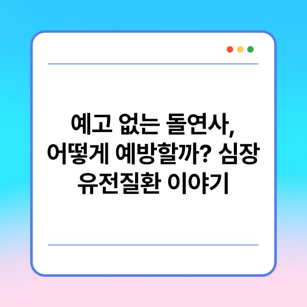 예고 없는 돌연사는 많은 사람들에게 큰 충격을 줍니다. 특히 심장 유전질환이 원인일 경우, 예방과 조기 진단의 중요성이 더욱 부각됩니다. 심장 유전질환은 가족력과 연관되어 나타나는 경우가 많아 주의가 필요합니다. 이 글에서는 예고 없는 돌연사를 예방할 수 있는 방법과 심장 유전질환의 핵심 내용을 자세히 알아보겠습니다. 지금부터 관련 주요 정보들을 하나씩 살펴보겠습니다.