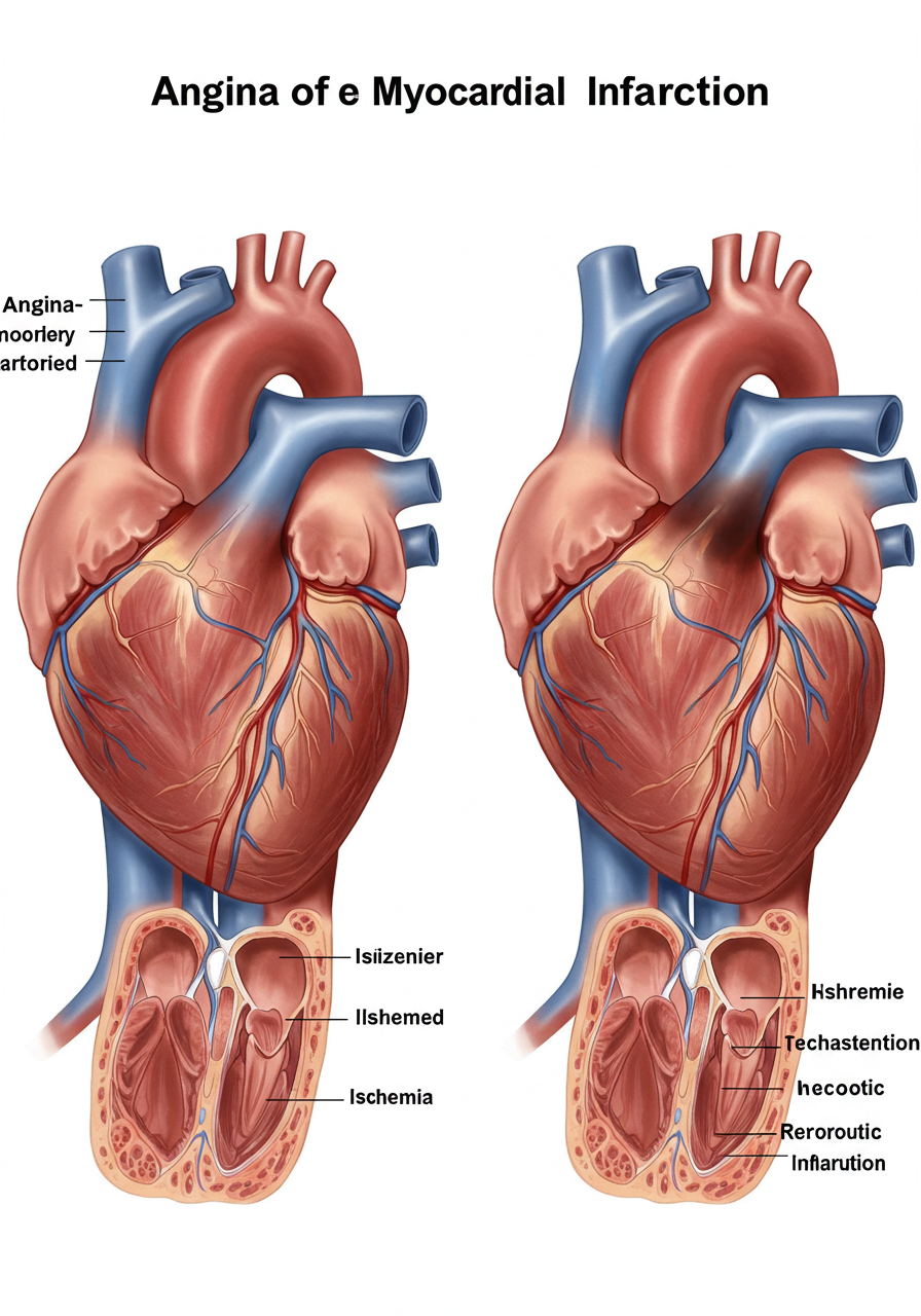 심근경색은 심장 근육에 혈액 공급이 차단되면서 발생하는 상태입니다. 이 경우 왼쪽 가슴에 강한 통증이 나타나며, 호흡 곤란, 메스꺼움 등의 증상이 동반될 수 있습니다. 심근경색은 생명을 위협할 수 있는 응급 상황이므로 즉각적인 치료가 필요합니다. 증상이 의심될 경우 119에 연락하여 즉시 도움을 요청해야 합니다.