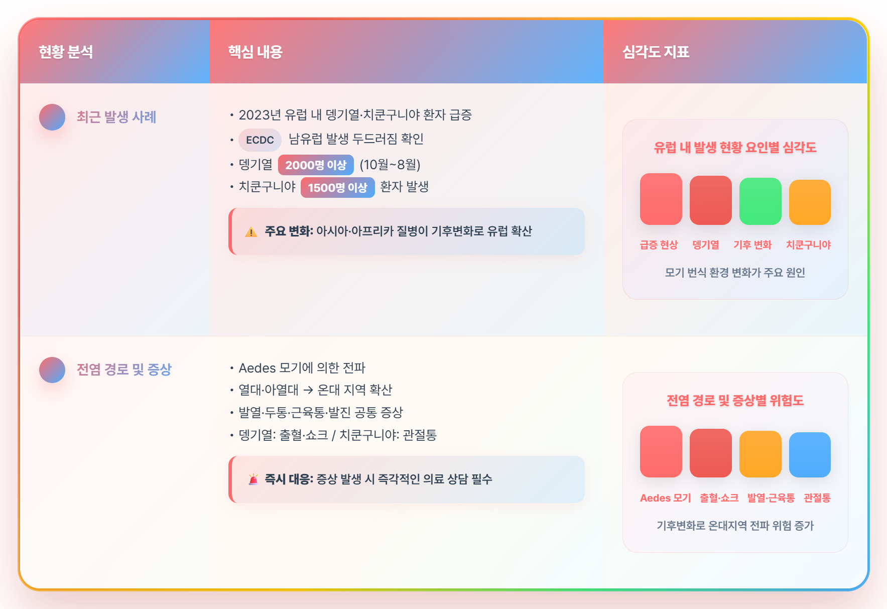 최근 발생 사례 유럽 내 뎅기열 및 치쿤구니야 환자 급증