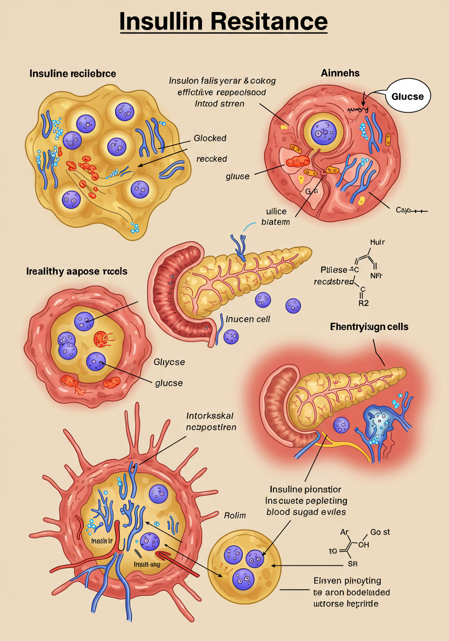 인슐린 저항성은 비만, 운동 부족, 스트레스 등 여러 요인에 의해 발생합니다. 세포가 인슐린에 대한 반응을 잃으면, 췌장은 더 많은 인슐린을 분비하게 되며, 이는 장기적으로 당뇨병 등의 질환으로 이어질 수 있습니다.