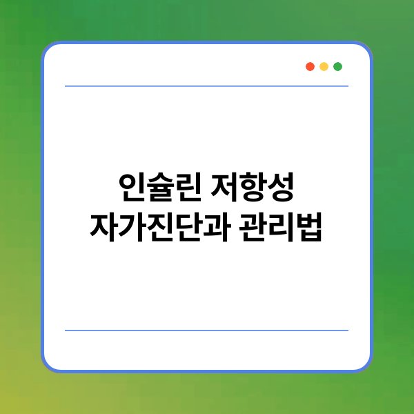 A1: 인슐린 저항성은 특정 증상(피로감, 체중 증가 등)과 허리둘레, BMI 등을 체크하여 자가 진단할 수 있습니다. 혈당 검사도 참고할 수 있습니다.