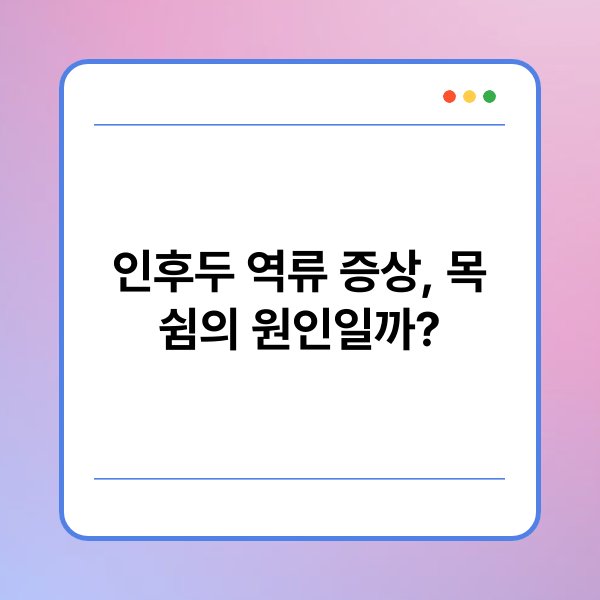 인후두 역류의 주요 증상으로는 기침, 목의 이물감, 쉰 목소리 등이 있습니다. 이러한 증상은 위산이 후두에 자극을 주어 발생하며, 특히 아침에 심해질 수 있습니다. 또한, 목의 통증이나 불편함이 동반될 수 있으며, 심한 경우에는 호흡 곤란을 느끼기도 합니다.