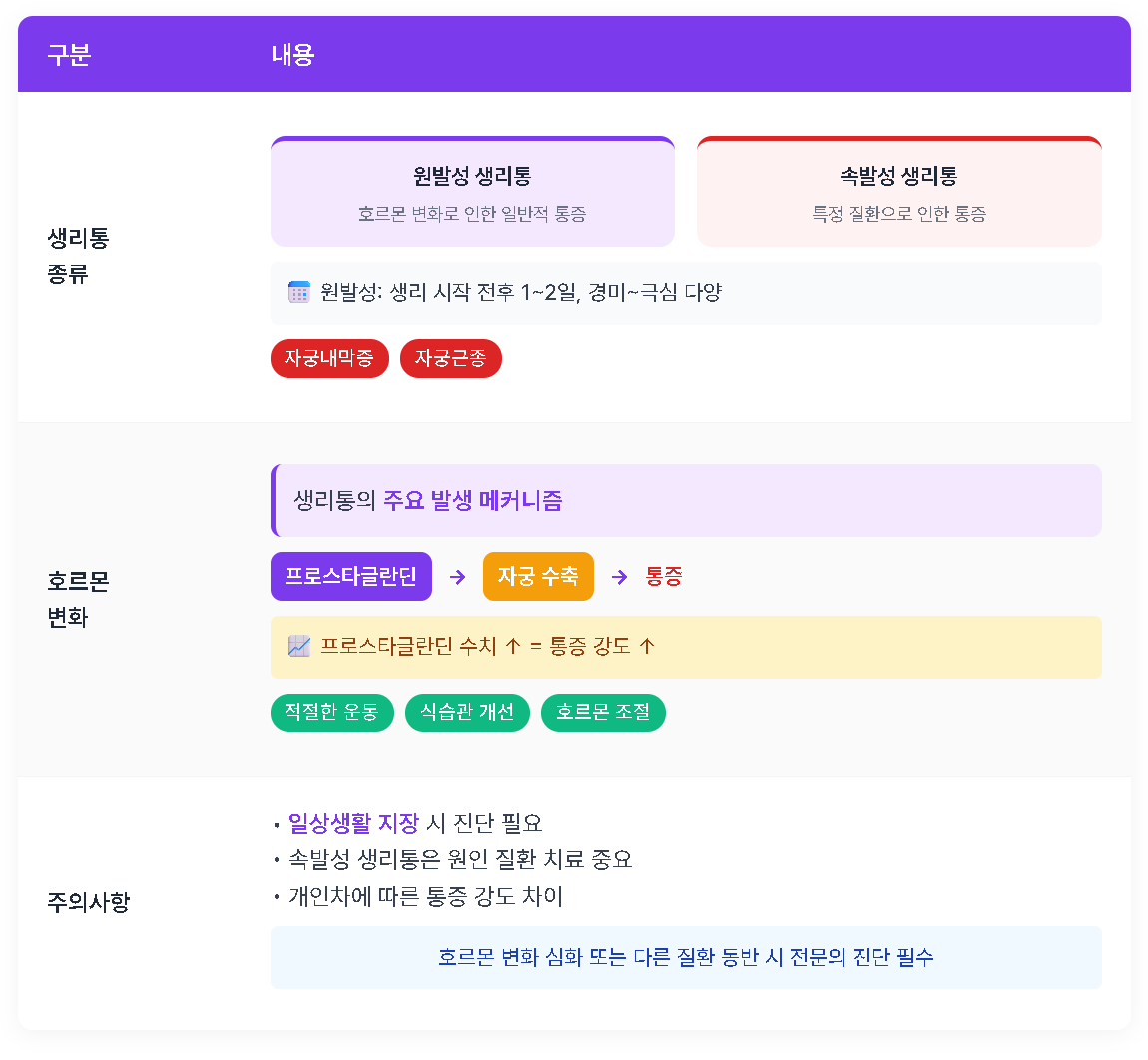 그러나 호르몬 변화가 심해지거나 다른 질환이 동반되는 경우, 단순한 생리통으로 치부하지 말고 전문의의 진단을 받는 것이 필요합니다.