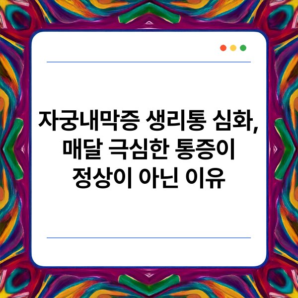 극심한 생리통이 지속적으로 발생하는 경우, 반드시 전문가의 진단을 받아야 합니다. 자궁내막증이 아닌 다른 질환이 원인일 수도 있으므로, 정확한 검진이 필요합니다.