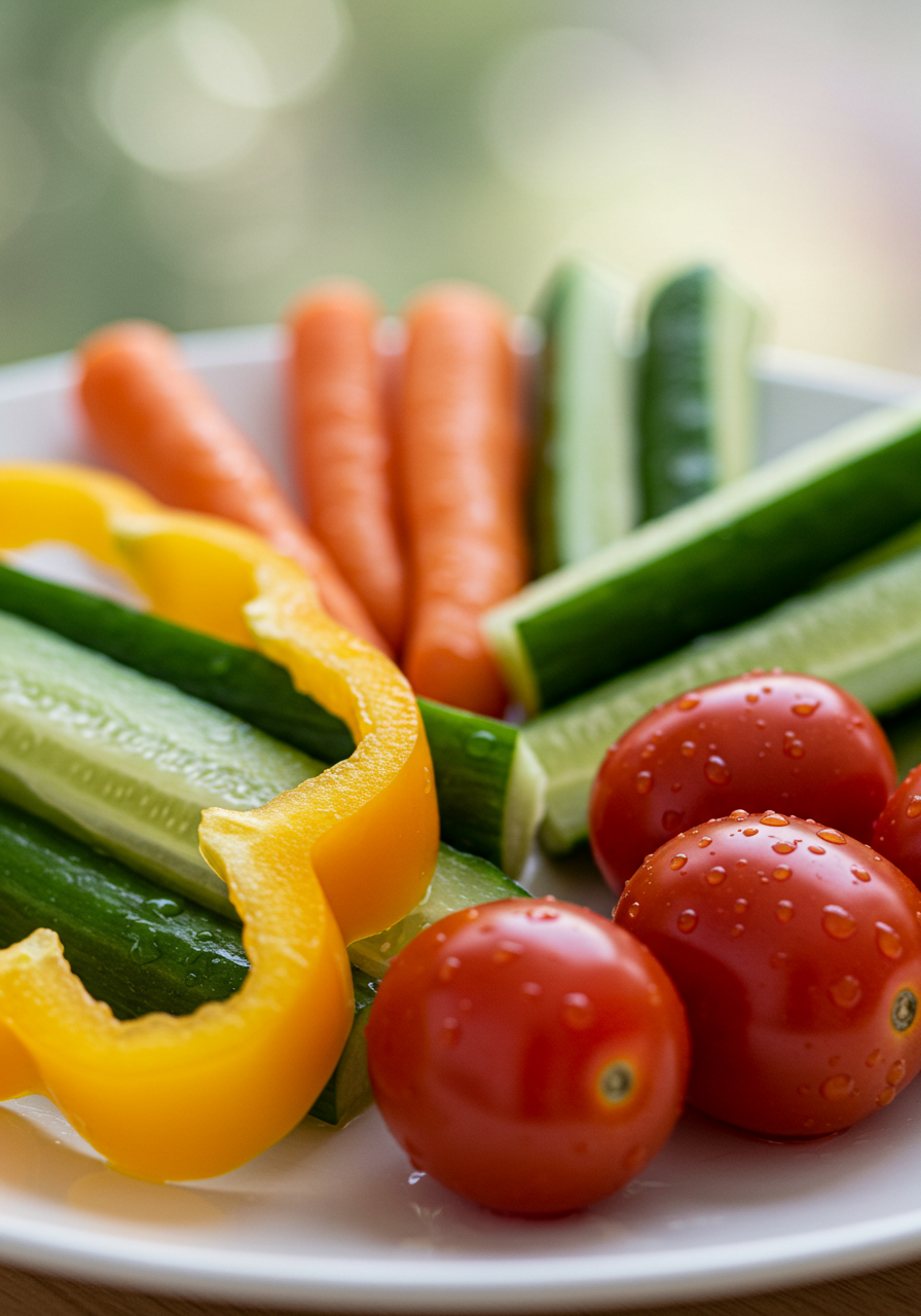 이 조합은 영양가가 높고, 간식으로 먹기 좋은 맛을 제공합니다. 채소는 비타민과 미네랄이 풍부하여 건강에 이롭습니다.