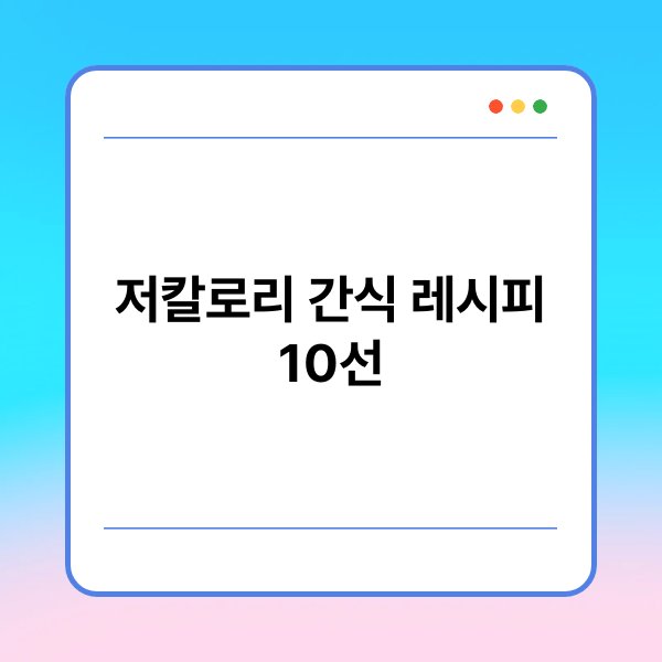 A1: 저칼로리 간식으로는 과일 샐러드, 요거트와 견과류, 채소 스틱 등이 있습니다. 이러한 간식은 건강에 유익하며 쉽게 만들 수 있습니다.