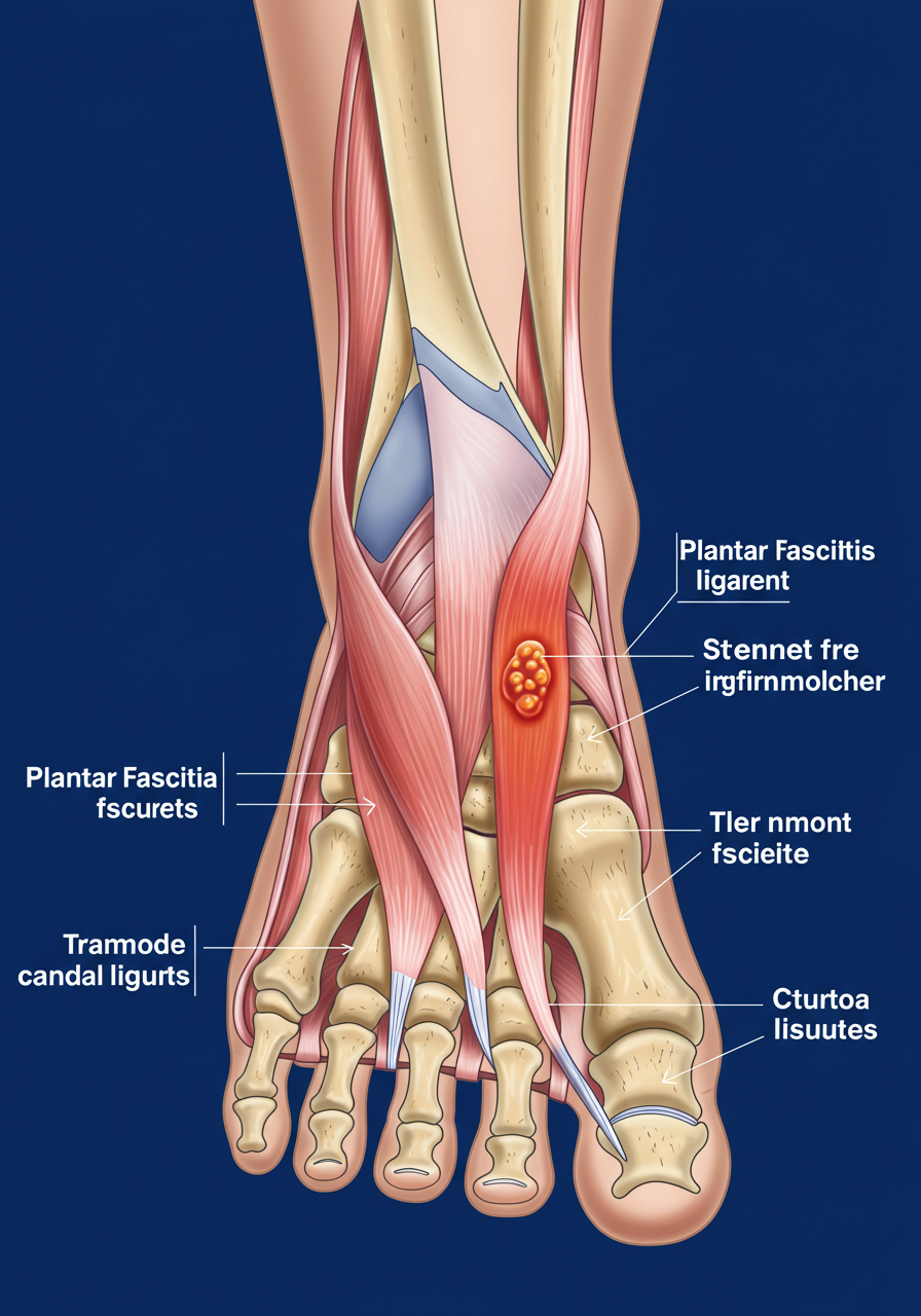 족저근막은 발바닥에 위치한 두꺼운 섬유조직으로, 발의 아치 형태를 유지하는 역할을 합니다. 이 조직은 발꿈치에서 발가락까지 연결되어 있으며, 발의 충격을 흡수하고 안정성을 제공합니다. 족저근막이 과도하게 늘어나거나 손상되면 염증이 발생하고, 이는 통증으로 이어질 수 있습니다.