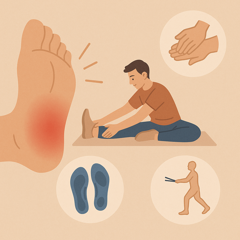 물리치료는 족저근막염의 첫 번째 치료 방법으로 권장됩니다. 이는 전문 물리치료사가 수행하며, 발의 강도와 유연성을 향상시키기 위한 스트레칭과 운동을 포함합니다. 이러한 치료는 족저근막의 긴장을 완화하고 통증을 줄이는 데 효과적입니다.