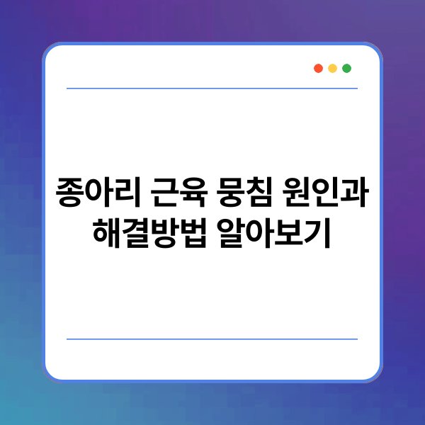 최근 많은 사람들이 운동 후 종아리 근육의 뭉침 현상을 경험하고 있습니다. 이는 운동이나 장시간 같은 자세로 앉아 있는 경우 자주 발생하는 문제입니다. 종아리 근육 뭉침은 통증을 유발할 수 있으며, 일상 생활에 불편을 초래할 수 있습니다. 이 글에서는 종아리 근육 뭉침의 원인과 해결 방법에 대해 자세히 알아보겠습니다. 건강한 라이프스타일을 위해 이 내용을 끝까지 읽어주시기 바랍니다.