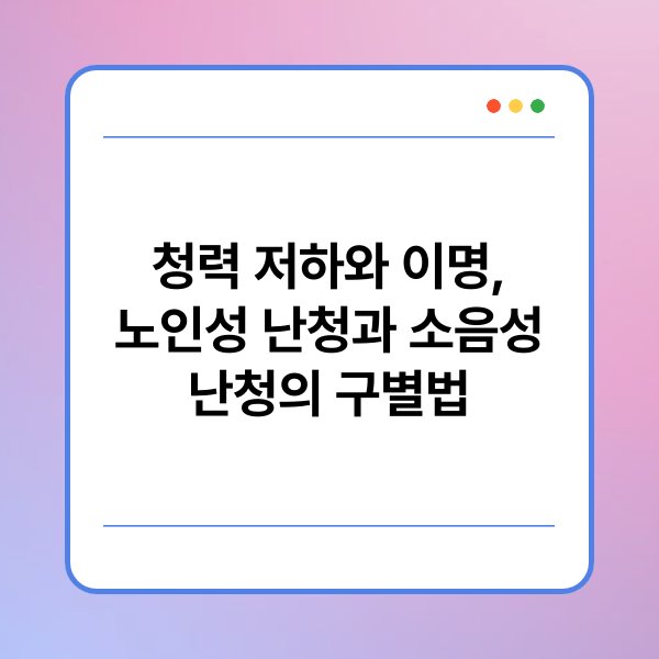 따라서, 청력 저하의 원인과 증상을 명확히 구별하는 것이 중요합니다. 이를 통해 적절한 진단과 치료를 받을 수 있습니다.