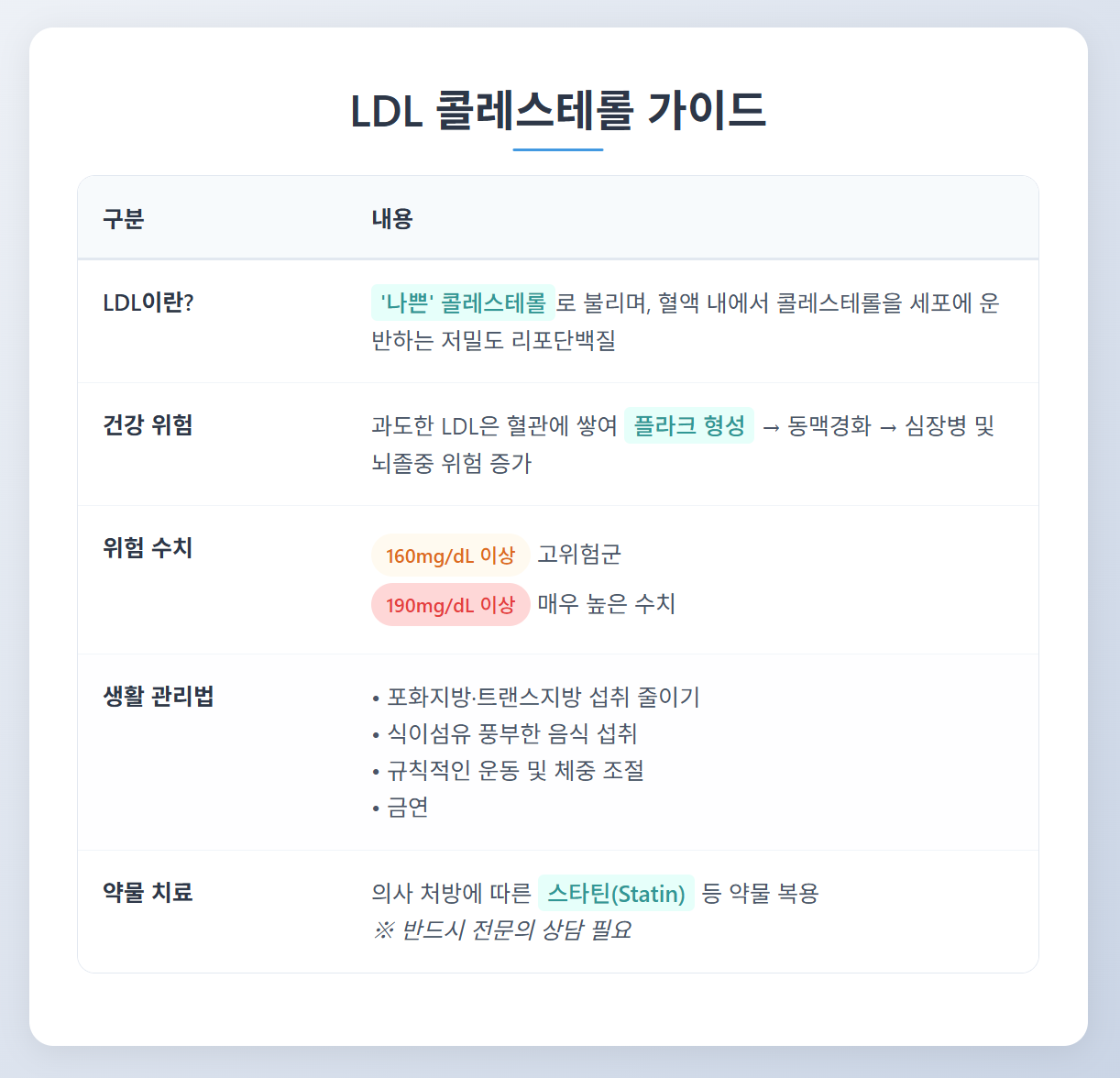✅LDL 수치가 높으면 건강에 위험이 발생할 수 있습니다