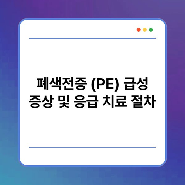 폐색전증(PE)은 혈액이 폐동맥을 막아 발생하는 중대한 질환입니다. 이 질환은 심각한 급성 증상을 동반하며, 적절한 응급 치료가 필요합니다. 많은 이들이 폐색전증의 증상과 치료 절차에 대한 정보를 찾고 있습니다. 이 글에서는 폐색전증의 급성 증상과 응급 치료 절차에 대해 자세히 알아보겠습니다. 관련된 주요 정보들을 하나씩 살펴보겠습니다.