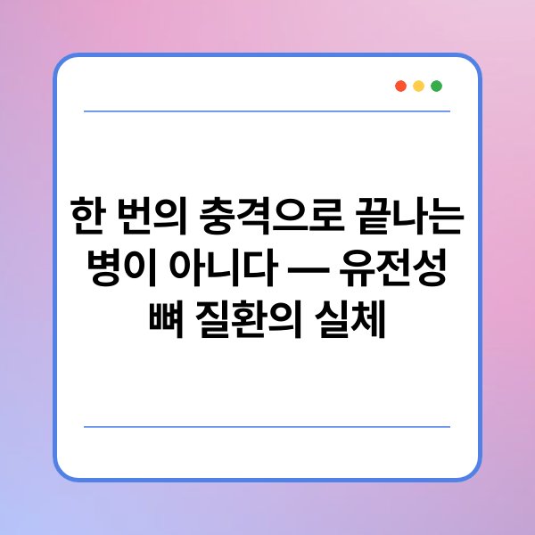한 번의 충격으로 끝나는 병이 아니다라는 말은 유전성 뼈 질환의 실체를 이해하는 데 중요한 키워드입니다. 이러한 질환은 단순한 외상으로만 발생하지 않고, 유전적 요인에 의해 지속적이고 반복적인 문제를 일으킬 수 있습니다. 뼈의 구조적 이상이나 대사 문제로 인해 정상적인 회복이 어려워 삶의 질에 영향을 미칠 수 있습니다. 본문에서는 유전성 뼈 질환의 주요 원인과 증상, 치료법 등에 대해 자세히 알아보겠습니다. 지금부터 유전성 뼈 질환과 관련된 주요 정보들을 하나씩 살펴보겠습니다.