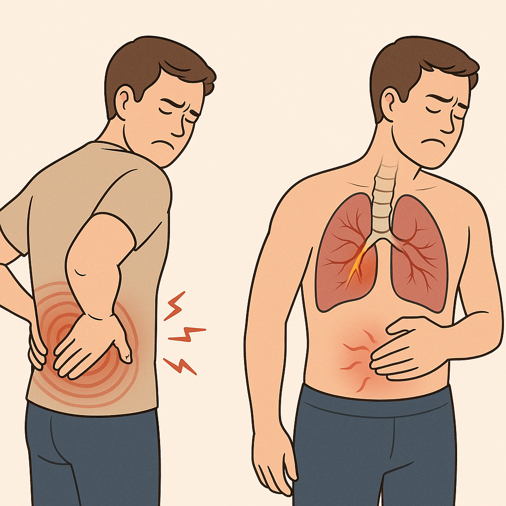 근육통은 주로 근육의 과사용, 긴장, 또는 외상에 의해 발생합니다. 일상적인 활동 중에 무리한 운동이나 자세로 인해 근육이 과도하게 긴장할 경우 통증이 나타날 수 있습니다. 이러한 통증은 일반적으로 허리 부위에 국한되지 않고, 전체적인 근육의 피로와 관련이 있습니다.