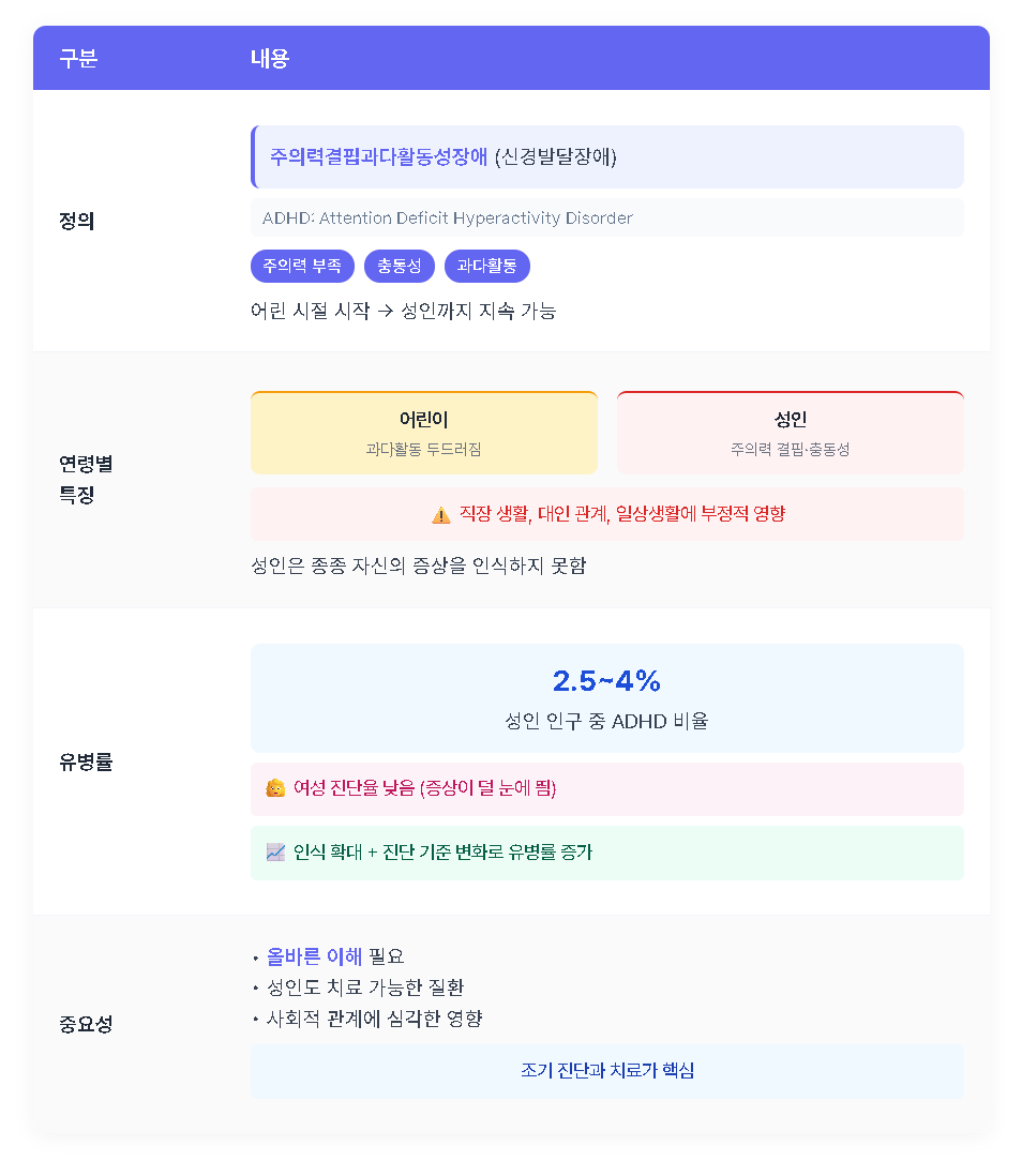 ✅성인 ADHD는 집중력 저하와 관련된 장애입니다