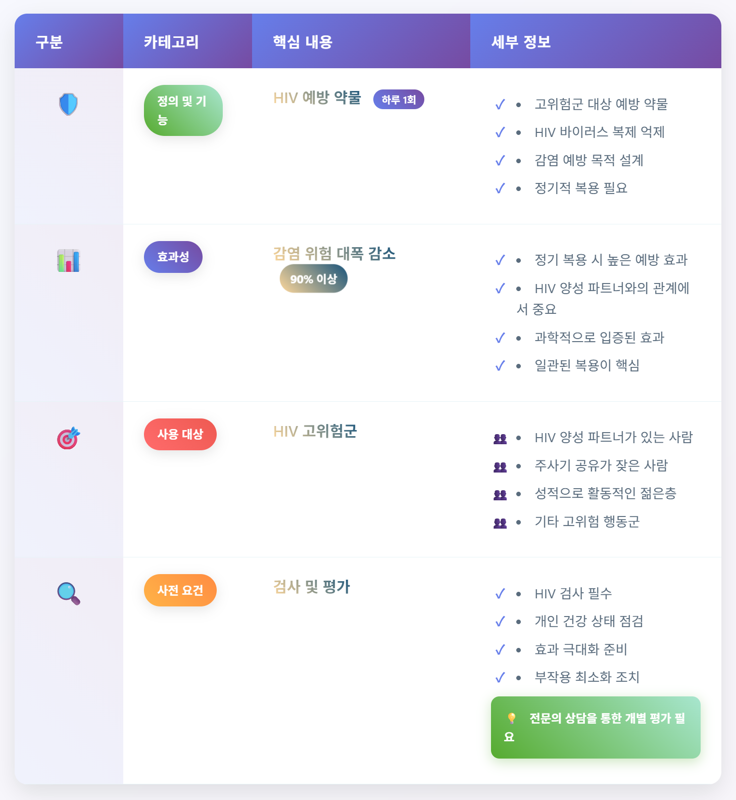 | PrEP 정의 | HIV 예방을 위한 약물 |